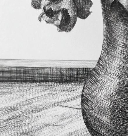 To mimic metallic surfaces, use a combination of dark and light grays along with highlights from a white pencil or gel pen. The key to get a realistic metallic sheen is placing strong highlights where the light would hit, and shading around it with deeper tones. Another way I like to do a metallic sheen is using a silver metallic gel pen. In the photo below, I used it for making the glass on the mirror shiny.